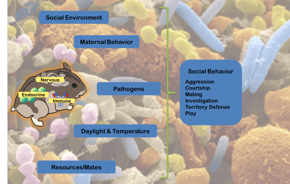 Kristyn and Greg’s microbiome review paper has been accepted for publication in Hormones and Behavior! This review discusses evidence for the role of the gut microbiome in modulating social behavior and addresses potential mechanisms by which the microbiome may be communicating with the brain and immune system to influence behavior.